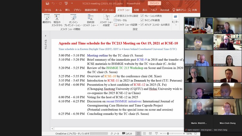 2021年10月20日,SEX8 管大为教授作为SEX8 代表在线参加了在美国华盛顿举办的第十届冲刷与侵蚀国际会议中的TC213委员会会议。会上,我校联合重庆交通大学向与会国际委员们报告了两校的基本情况、冲刷与侵蚀相关科研基础以及共同主办第十二届国际会议的详细计划。通过TC213委员会17名委员的投票,全票通过两校的联合申请,确定12th ICSE于2025年11月3-7日在中国重庆举办,这也是中国大陆地区首次获得该国际会议的举办权。重庆交通大学参会代表有杨胜发教授、付旭辉副教授和张鹏博士。