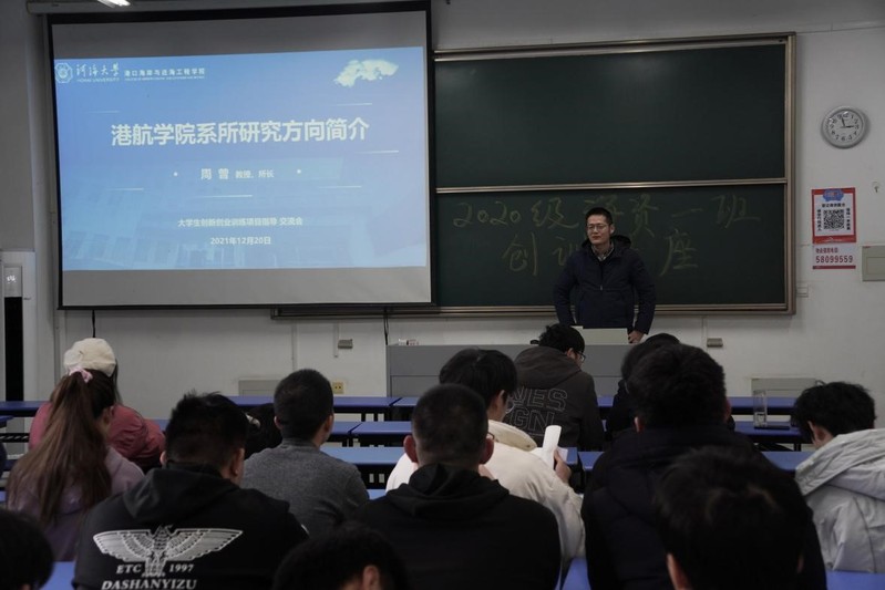 讲座伊始,周曾老师为同学们介绍了海岸带资源与环境研究所师资队伍及荣誉获奖,并详细讲解了港航院各系所的发展现状及研究内容,让同学们对于学院各系所有了更加全面深入的了解,提升探索创训研究方向的针对性。