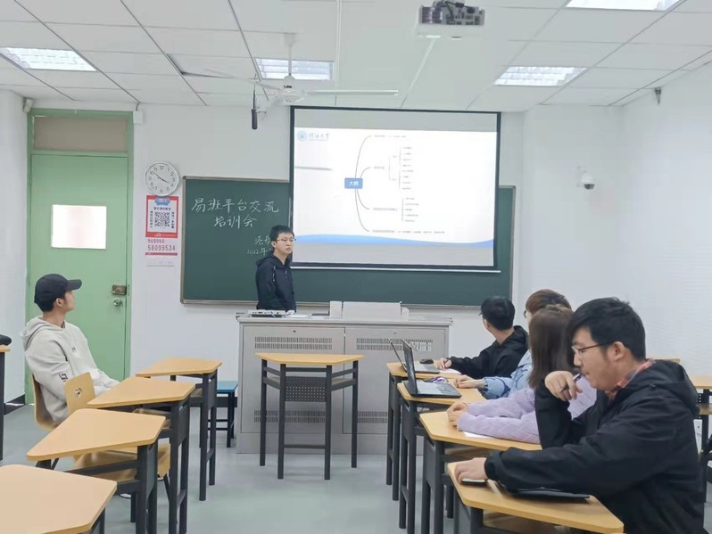 张晓东围绕校级易班工作站的组织架构、易班管理、公共管理平台、轻应用快搭平台、易班优课等5个方面进行介绍,通过教学指导和现场操作,帮助院级易班工作站的成员更直观地学习易班各项功能的操作方法。教学后,港航院易班工作站的成员们就工作中遇到的问题和想法与张晓东、毛润宇交流。