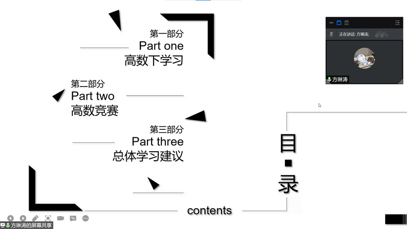 方琳涛同学从自己对高数下的学习经验出发,对高数下重点难点、等进行了详细的介绍,指出了笔记的重要性。提出在备考时使用笔记例题对薄弱环节进行重点弥补的方法,为21级的同学们提供了基础而系统的学习方法。