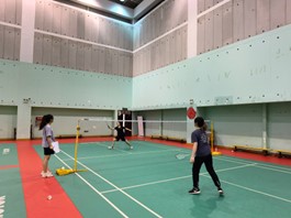 男子双打小组赛。6队男双选手进行抽签分组,最终3队选手将进入决赛循环赛。来自港航院的三支队伍乔舒桐、伍正诚;王海鹏、谢明俊;谭炜耀、周浩澄均进入男双决赛。同时进行的是女子双打比赛,由来自港航院的王雨、温世玮对阵海洋院选手陈劭雯、吴梦霞。四位女生在双打中发挥了优秀的团队合作精神,比赛十分精彩。最终,王雨、温世玮以大比分2比0获得女双冠军。