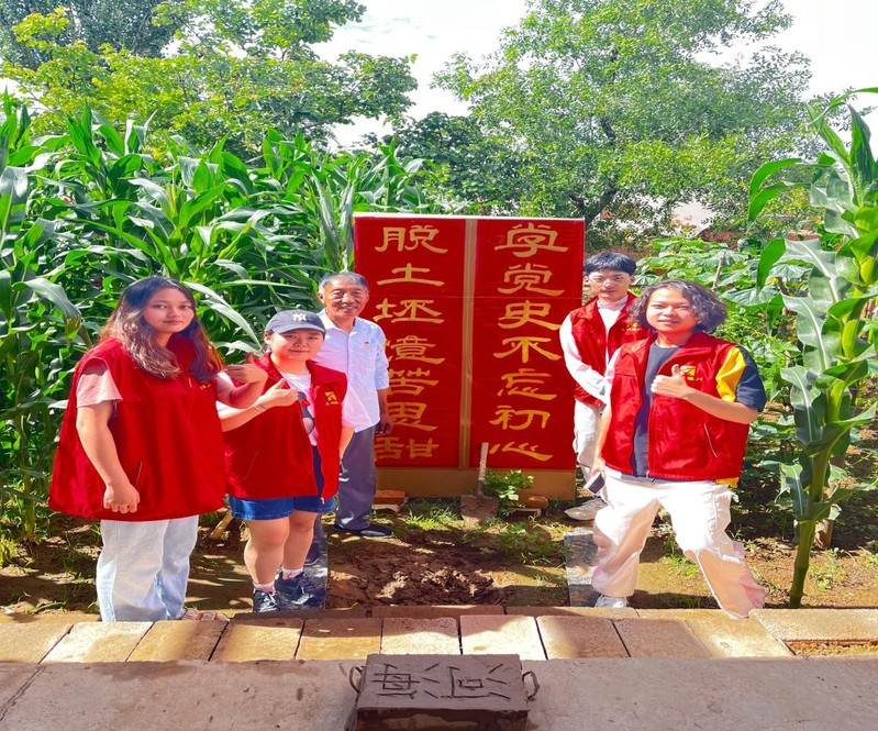 成员听第一代移民户奋斗史 小组成员参加脱土坯体验农活