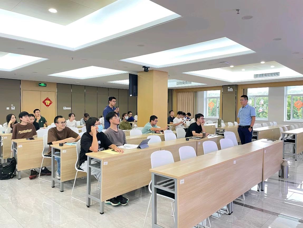师生在严恺馆702学术报告厅与两位专家进行交流,报告会由省重点实验室常务副主任周曾教授主持。