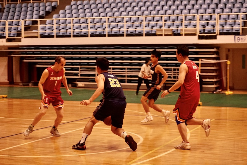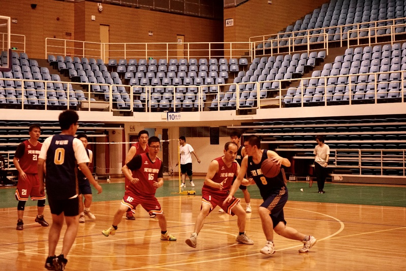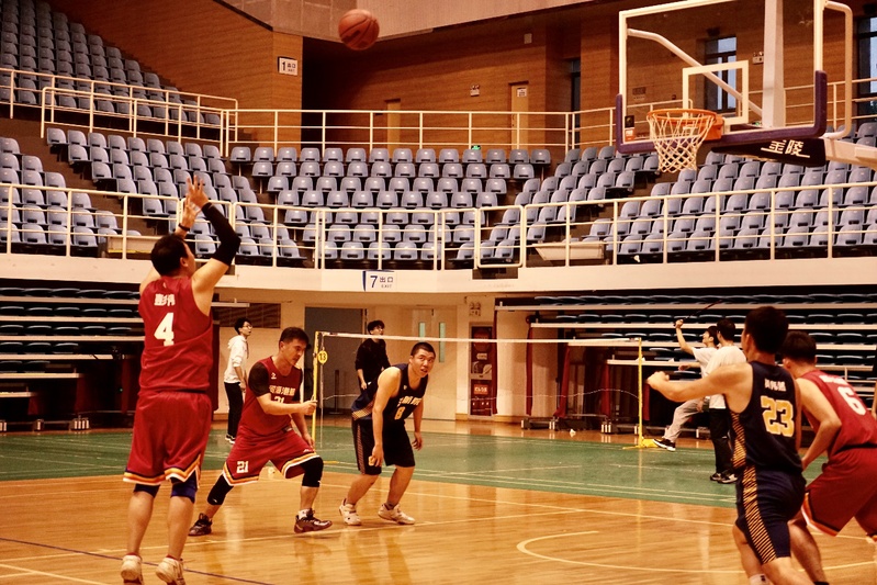 易边再战,学生队23号黄伟然突破重围,强硬对抗,接连打进三球,缩小比分差距。教工队凭借巧妙的战术配合,在1号郑金海的指挥下,4号彭伟多次跑出空位,1号郑金海弧顶发牌,4号彭伟底线中投打进。第三节比分定格在49:28,教工队大比分领先。