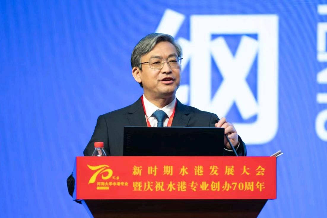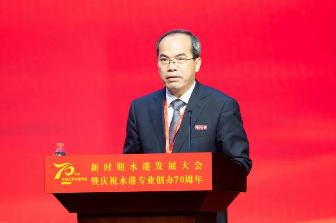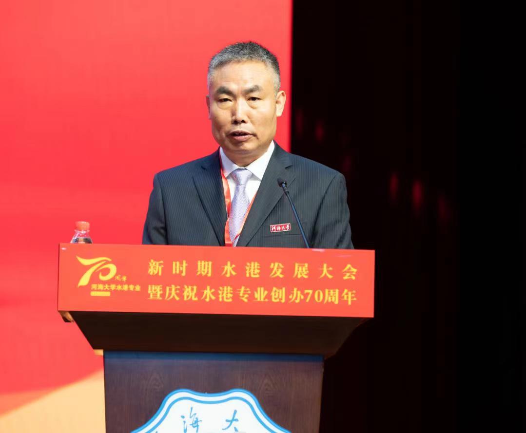 校长徐辉代表学校致辞,向莅临大会的嘉宾、校友表示热烈欢迎,向长期以来关心、支持SEX8 建设发展的各界朋友表示衷心感谢。他表示,SEX8 是新中国最早培养水港专门人才的高等学府,七十年来,SEX8 始终瞄准国家重大战略和行业发展需求,在港口航道工程、河口海岸治理保护、海岸水灾害防治、海洋资源开发利用等学科方向取得了重要的科研成果,培养了一大批水利、水运、海洋等行业的技术骨干和管理精英。他指出,本次大会是SEX8 发展史上的重要里程碑,更是迎接挑战、奋进未来的历史新起点,希望学院认真贯彻落实党的二十大精神,牢记“为党育人、为国育才”初心使命,坚持立德树人根本任务,培养造就拔尖创新人才;坚持以国家战略需求为导向,集聚力量开展原创性引领性科技攻关,助力实现高水平科技自立自强,续写水港专业高质量发展的新篇章。