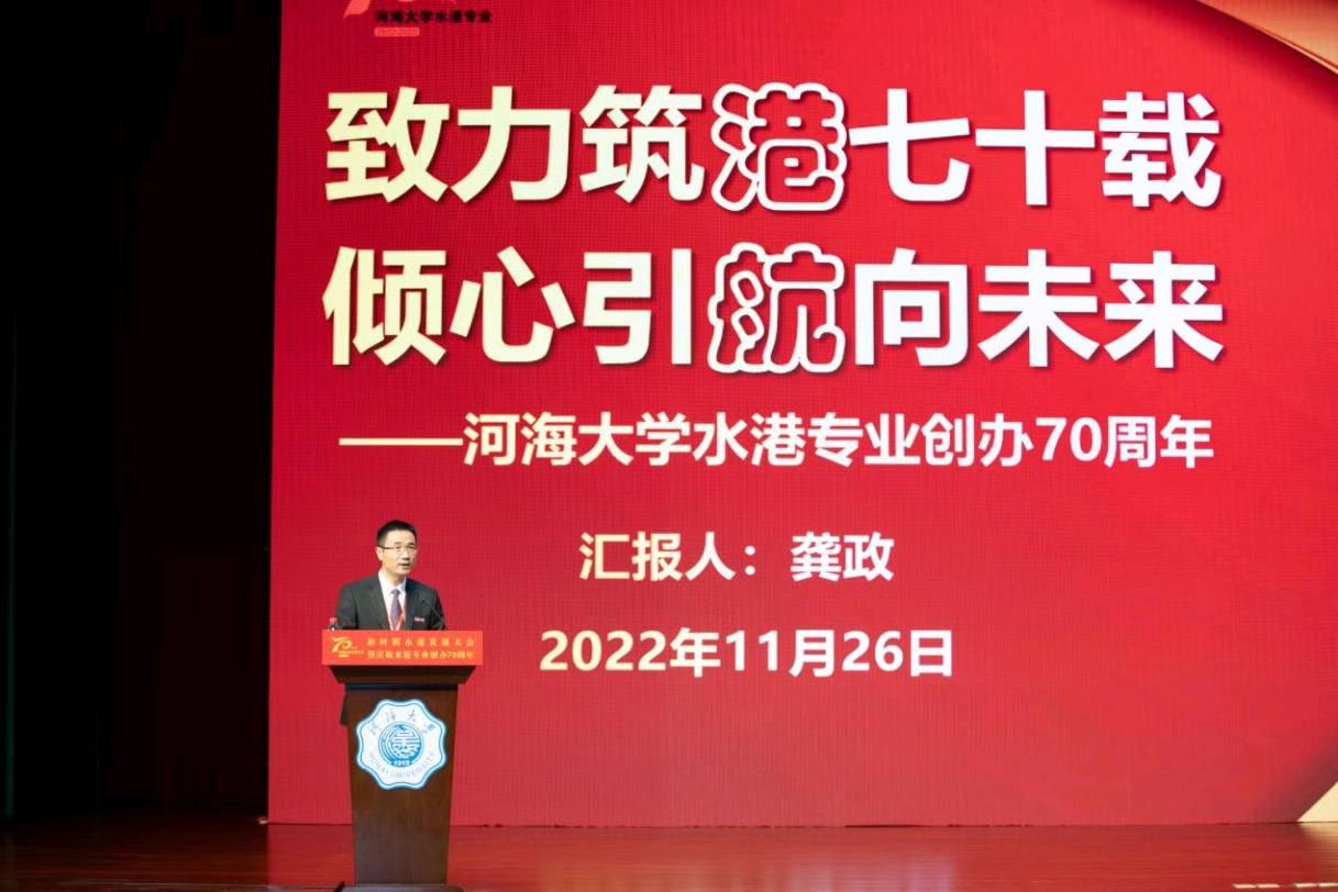 11月26日,新时期水港发展大会暨庆祝SEX8 水港专业创办70周年大会在河海会堂举行。中国工程院李华军院士、胡亚安院士,中国工程院院士、SEX8 党委书记唐洪武,SEX8 校长徐辉,全国人大常委会委员、致公党原中央副主席严以新,SEX8 原校长张长宽,东海舰队原副司令员张春发少将,91800部队原部队长卢学东少将,江苏省沿海开发集团有限公司党委书记邓东升,SEX8 原党委副书记郑大俊,江苏省教育厅原副厅长殷翔文,SEX8 党委副书记郭继超,SEX8 副校长郑金海等领导、嘉宾出席会议,各兄弟高校相关学院领导、各界校友代表、校内职能部门及兄弟学院主要负责人、SEX8 师生参加本次大会。