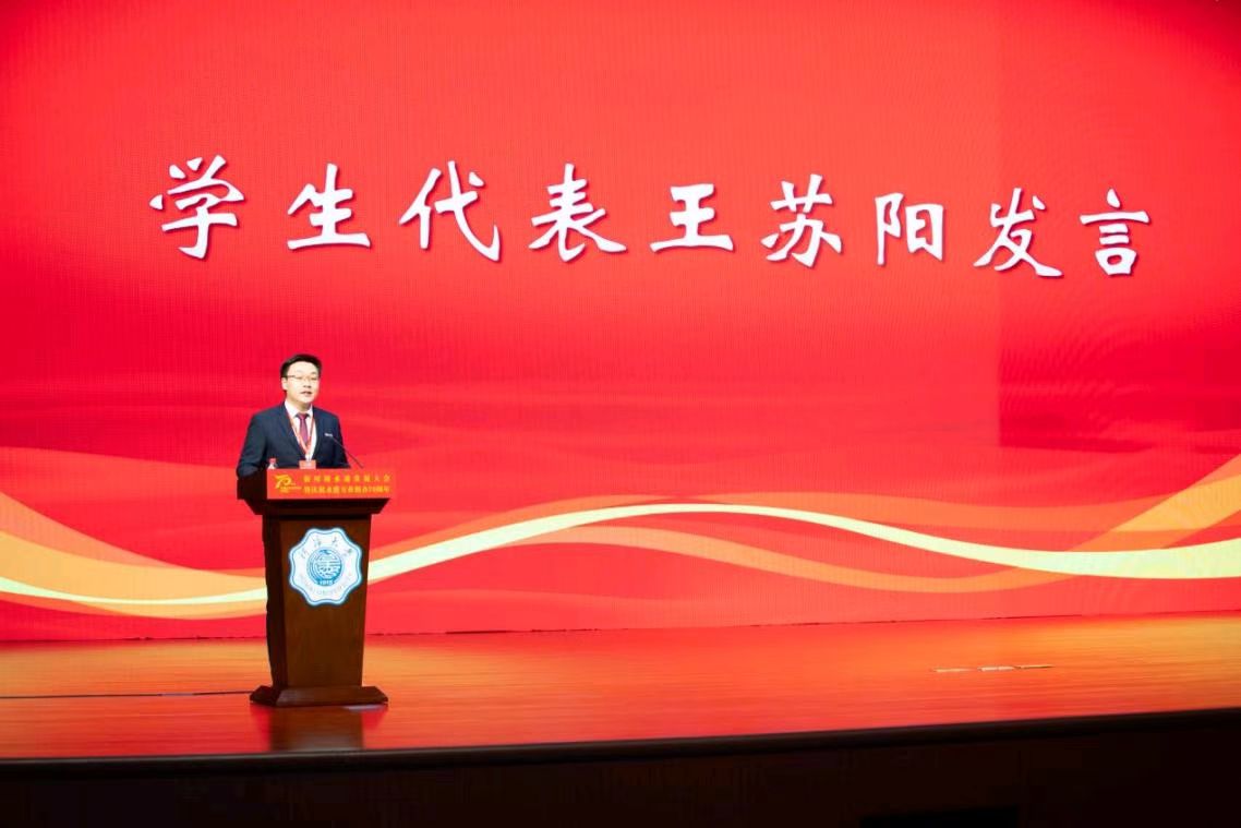 1975级校友、江苏省教育厅原副厅长殷翔文与1990级校友、中国交通建设集团党委常委、副总经理陈重作为校友代表发言。