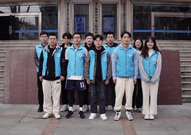 下午3时,身穿蓝色马甲的港航院研究生志愿者们准时在严恺馆楼下集合。根据事先的分工,他们开始有计划地对严恺馆楼下的“望归圃”及海工实验室过道中的垃圾进行清理,捡起草地、花圃和过道中枯树枝、落叶,并用扫帚清扫实验室走廊上的灰尘。