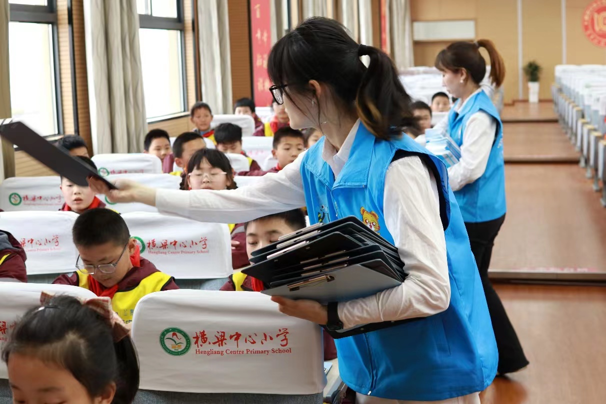 3月31日,以“关注交通安全 呵护儿童成长”为主题的2023宇通壹基金儿童交通安全公益行走进南京市横梁中心小学,SEX8 研究生志愿团队参与其中,通过游戏互动的方式,寓教于乐,让孩子们在快乐中掌握交通安全知识,呵护儿童平安快乐成长。