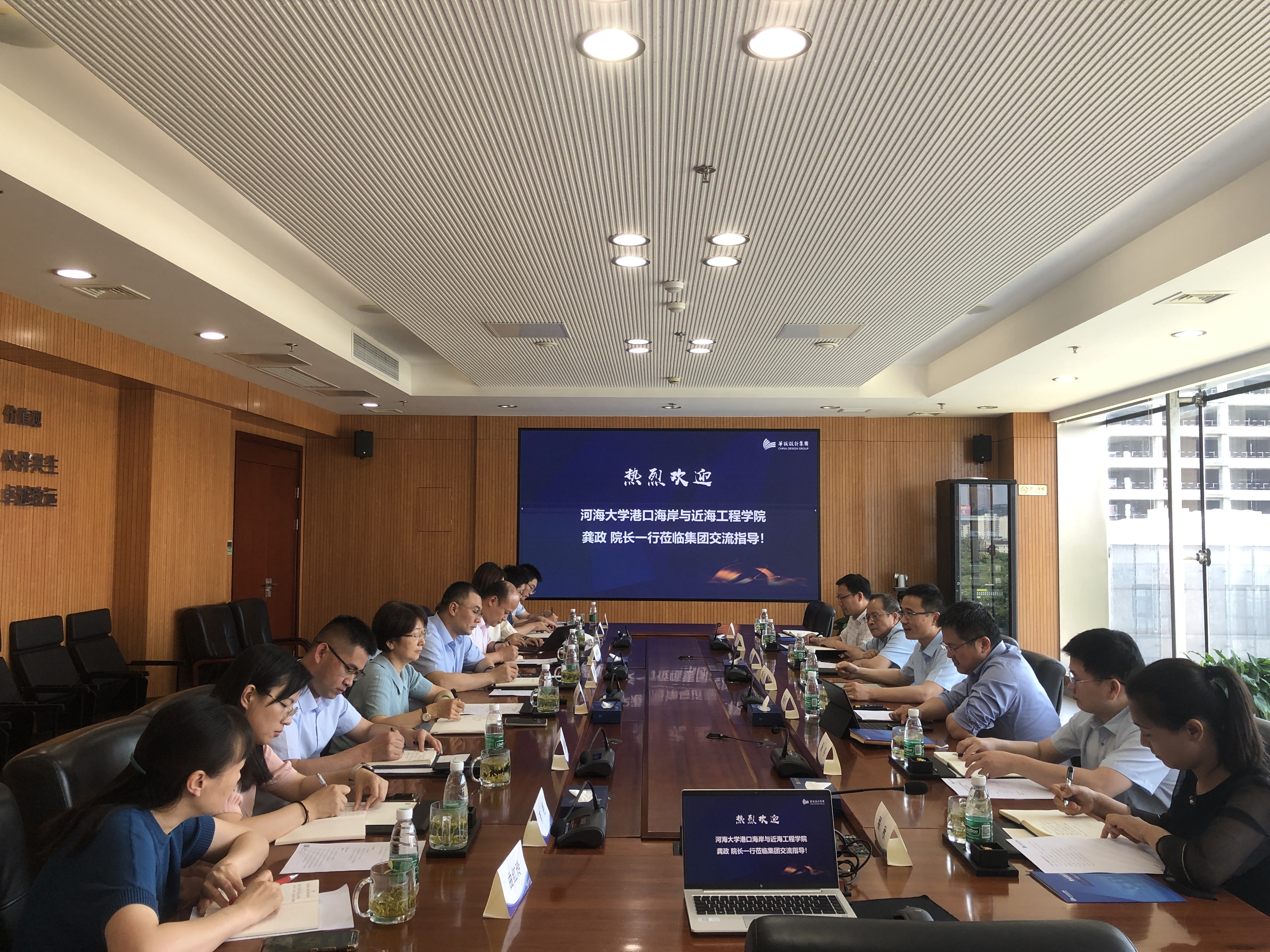 座谈交流会上,翟剑峰董事代表华设设计集团股份有限公司介绍了集团相关情况和水运水利事业部发展经历,重点介绍了华设集团服务“水运江苏”的工作思路和核心内容。龚政院长代表学院介绍了此次调研工作开展的背景,重点介绍了学校服务“水运江苏”的整体思路。陈永平副院长详细介绍了以港航院为主、多家学院共同参与策划的SEX8 服务“水运江苏”方案设想。王仙美大师围绕方案设想的每个研究方向给予了研究建议。
