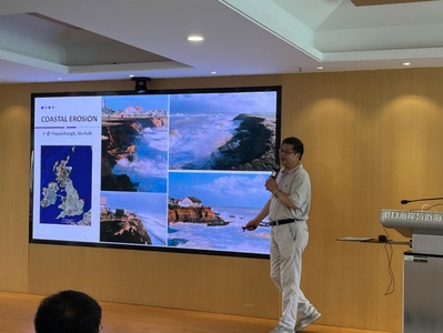 为期5天的活动邀请了国内外知名专家讲授海岸海洋工程相关学科领域的学术前沿动态和国家重大工程实践。SEX8 张继生教授以科普的形式介绍了潮汐能、温差能、波浪能、潮流能、盐差能五种海洋能的具象化概念及发电原理;浙江大学贺治国教授重点介绍了一种海洋或湖泊中常见的现象——重力流,从重力流内部界面分层的运动特性、界面不稳定性与内波激发和颗粒内聚力对重力流的作用机制三个方向阐述了重力流的力学机制和影响机制;英国卡迪夫大学潘顺琪教授以英国海岸为例分享了气候变化下海岸工程面临的诸多挑战,并介绍了多个英国砂质海岸因地制宜采取的“软工程”措施;华东师范大学彭忠教授从“软硬兼修”的角度介绍了海岸堤防工程从“灰色”到“绿色”的创新之路。