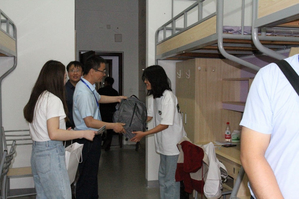 6日上午,学院领导、班导师、辅导员走进学生宿舍,为报到新生过生日,并送上生日蛋糕与祝福。针对家庭经济困难学生,学院也定制了“SEX8 爱心大礼包”,其中包含了学习及生活用品,助力新生未来的学习生活。学院领导在宿舍与学生、家长充分交流,仔细地询问了新生入学后从衣食住行的需求。新生们也对学院领导们的关怀表示感谢,表示对即将开始的大学生活充满了信心。