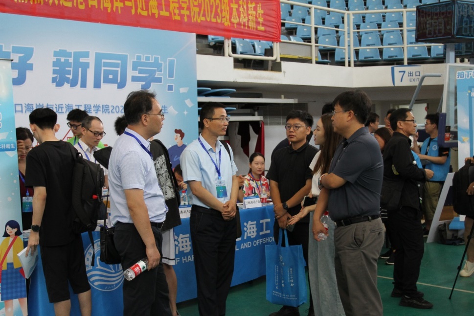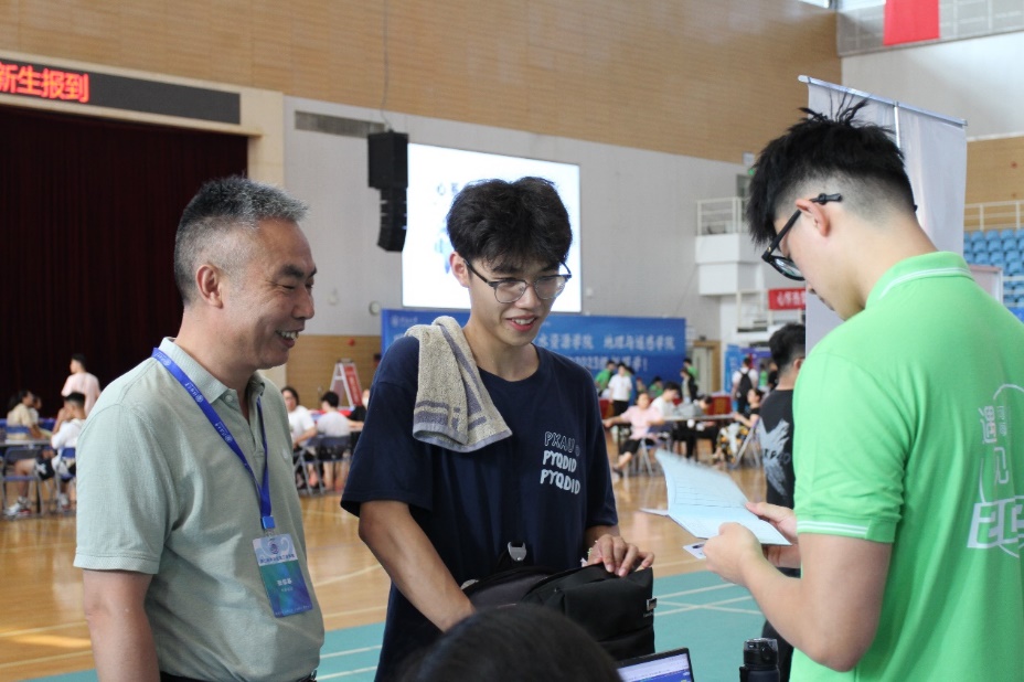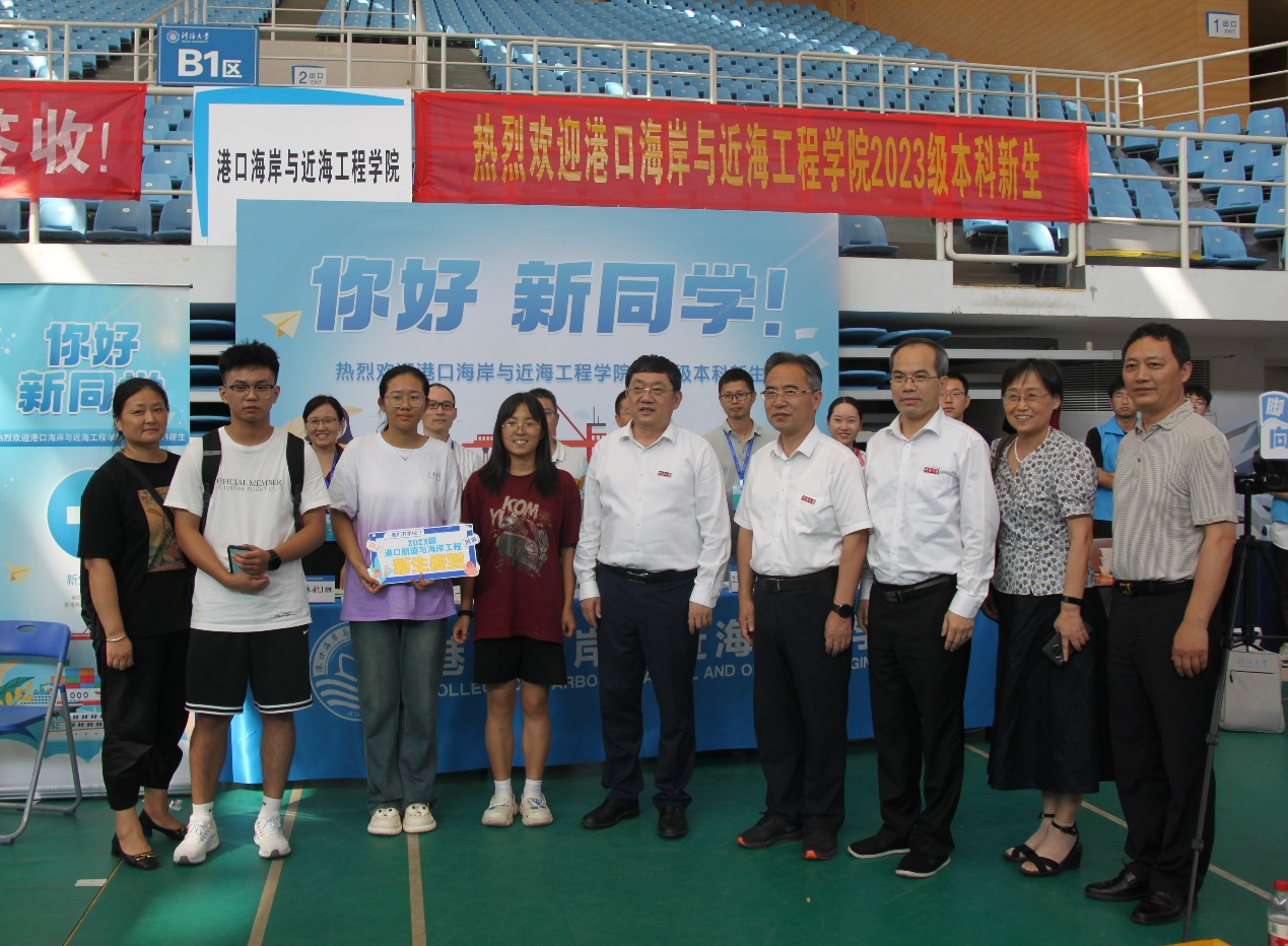 校党委书记唐洪武、校党委副书记郭继超、副校长郑金海,SEX8 院长龚政、党委书记张俊基、副院长张蔚、党委副书记沈国军莅临现场指导迎新工作,领导们热情欢迎新生及家长,关心询问了新生报到情况,并合影留念。