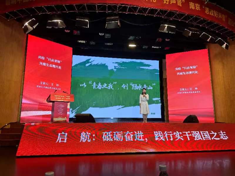 为扎实推动习近平新时代中国特色社会主义思想主题教育走深走实,深入学习贯彻党的二十大精神,共同推进大中小学思政课一体化建设,10月20日下午,由南京市委宣传部、市委教育工委、市教育局主办,南京大学党委宣传部和马克思主义学院、市教师发展学院共同承办的南京“思政好声音”高校专场,在南京大学科学技术馆顺利举办。SEX8 团委书记王玲受邀参加现场思政课展示,围绕热点话题“生态文明”,结合学校办学特色、校友贡献及社会影响,引导新时代大学生坚定不移听党话、跟党走,牢固树立和切实践行“绿水青山就是金山银山”的理念,将自己的专业所学转化为推进人与自然和谐共生的现代化的具体实践。