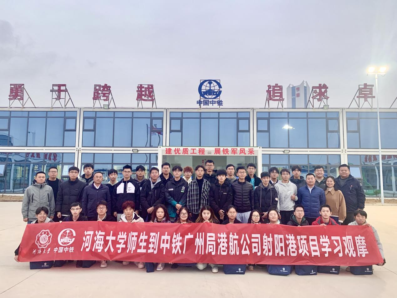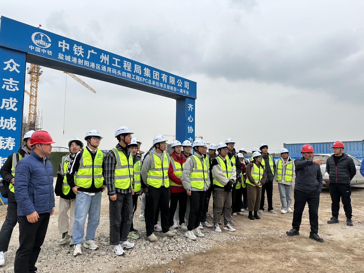 2023年11月26日,港航院组织开展第3期“走访名企 接轨职场”就业实践专项活动,中铁广州局港航公司人力资源部经理任刚、项目经理杨晓平、项目书记宾建帮、项目总工程师陈建阳、项目副经理赵晓磊、盐城港项目管理公司射阳港项目负责人张宏、设计代表宋德威等带领31名2022级本科生前往盐城港射阳港区通用码头四期工程,通过探访工程现场、参观项目部、观看宣传视频、听取项目介绍、座谈互动交流等形式,帮助师生认知企业基本概况与工程建设情况。SEX8 辅导员顾钰恒、林晨带队。