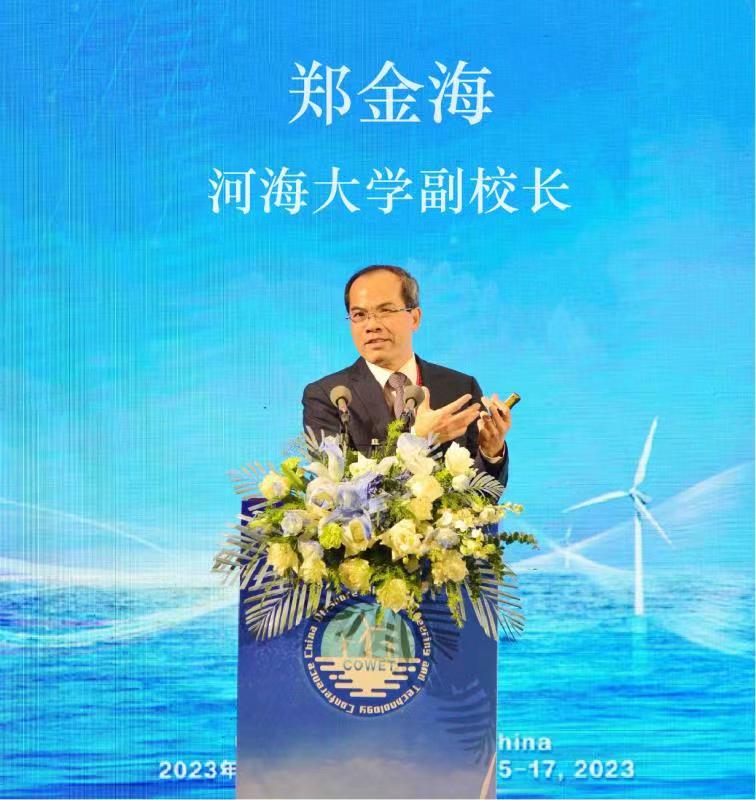会上,郑金海教授应邀作了题为“海上风机基础冲刷防护技术研究”的大会报告。他从海上风机基础冲刷防护所面临的技术挑战、冲刷核心物模试验装备研发、复杂动力荷载环境下冲刷机理、冲刷韧性防护技术与应用、未来研究前沿与展望等五个方面阐述了其团队在风机冲刷防护领域的最新研究成果与技术创新,为海上风电行业降本增效与可持续发展提供了宝贵的思路。参会同仁在会议期间讨论热烈,进行了深入的学术交流。
