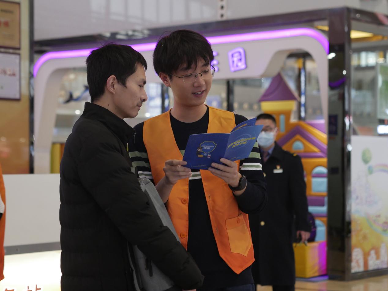 本次志愿服务共设置了三个摊位,分别为防诈宣传摊位、眼镜清洁摊位与铁路指引帮助摊位。港航院志愿者们主动向来往旅客讲解常见的诈骗手段,提醒旅客们提高防范意识。针对行人需求,出门在外眼镜很容易模糊且不方便清洁,眼镜清洁摊位的志愿者们使用超声清洁工具帮助戴眼镜的旅客清洗眼镜,旅客们拿到干净的眼镜都露出了满意的笑容。