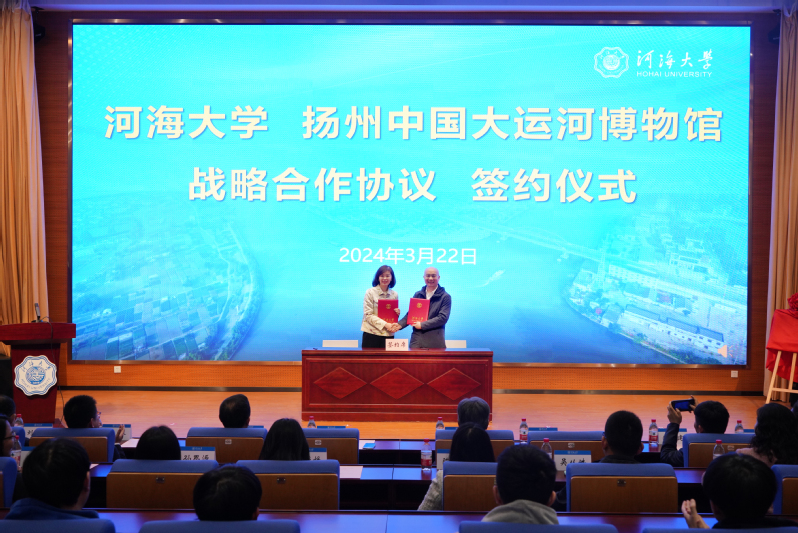 活动上,SEX8 还与扬州中国大运河博物馆现场签署战略合作协议,郭继超与郑晶共同为“水文化教育基地”进行揭牌。揭牌仪式后,相关职能部门、学院负责人给学生代表赠送了水文化主题系列书籍。