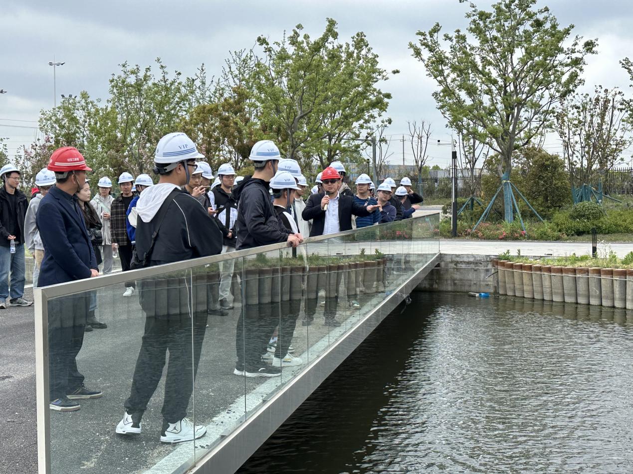 在安全培训后,港航院师生首先在项目部领导的讲解下,参观了扬州空港影视城项目,实地感受了水景基地、湖心岛等建设情况。
