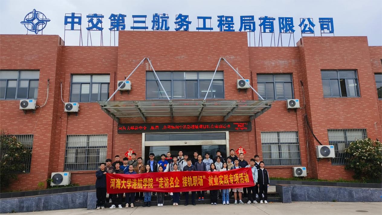 2024年4月20日,港航院开展“走访名企接轨职场”就业实践专项活动第6期,在辅导员顾钰恒、林晨带队下,29名学生走访中交三航局第三工程有限公司,赴扬州空港影视城项目参观,通过探访工程现场、听取项目讲解、观看企业视频、座谈互动交流等形式的实践活动,深入观摩学习企业的基本概况、工程的建设情况、员工的职业发展。中交三航局三公司扬州空港新城项目经理李海陵、书记刘琼、机电分公司总工王晓朋、党委组织部副部长、人力资源部副经理王珍一行全程陪同参观实践。