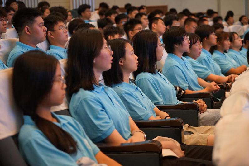 在讲到学院培养的优秀校友时,龚政教授用生动的人物故事向新生们展示了校友们在行业领域的卓越贡献,激励新生以优秀校友为榜样,尽早确定自己的奋斗目标,在大学期间不断夯实基础、练就本领,用汗水书写青春华章,到祖国需要的地方去建功立业。