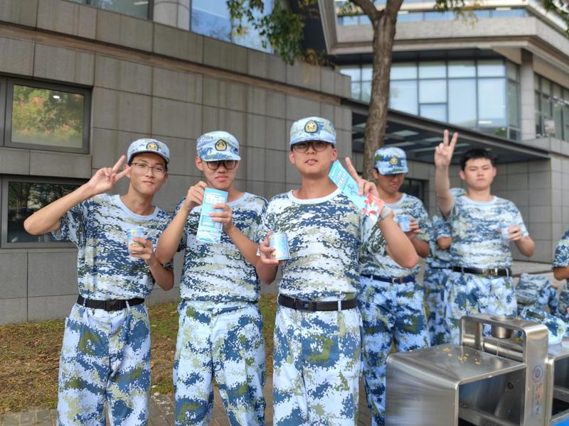 今天是开始军训以来,第一次将连队合并进行最后的集训。为了最后的汇报能够完美无瑕,所有同学都倾尽所有努力训练,十分疲惫。就在即将解散的时候,大家看见学院老师和企业代表带着一推车慰问品来到军训场地时,都重新打起了精神,努力训练。港航院的同学们有序领取了慰问品,大家都特别的开心。