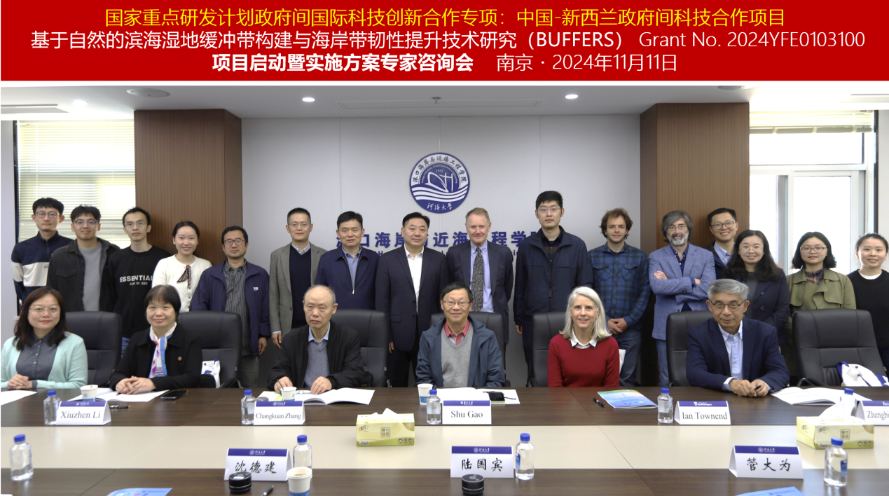 2024年11月11日,我校主持的国家重点研发中国和新西兰政府间科技合作项目“基于自然的滨海湿地缓冲带构建与海岸带韧性提升技术研究(项目批准号:2024YFE0103100)”项目启动会在南京顺利召开。