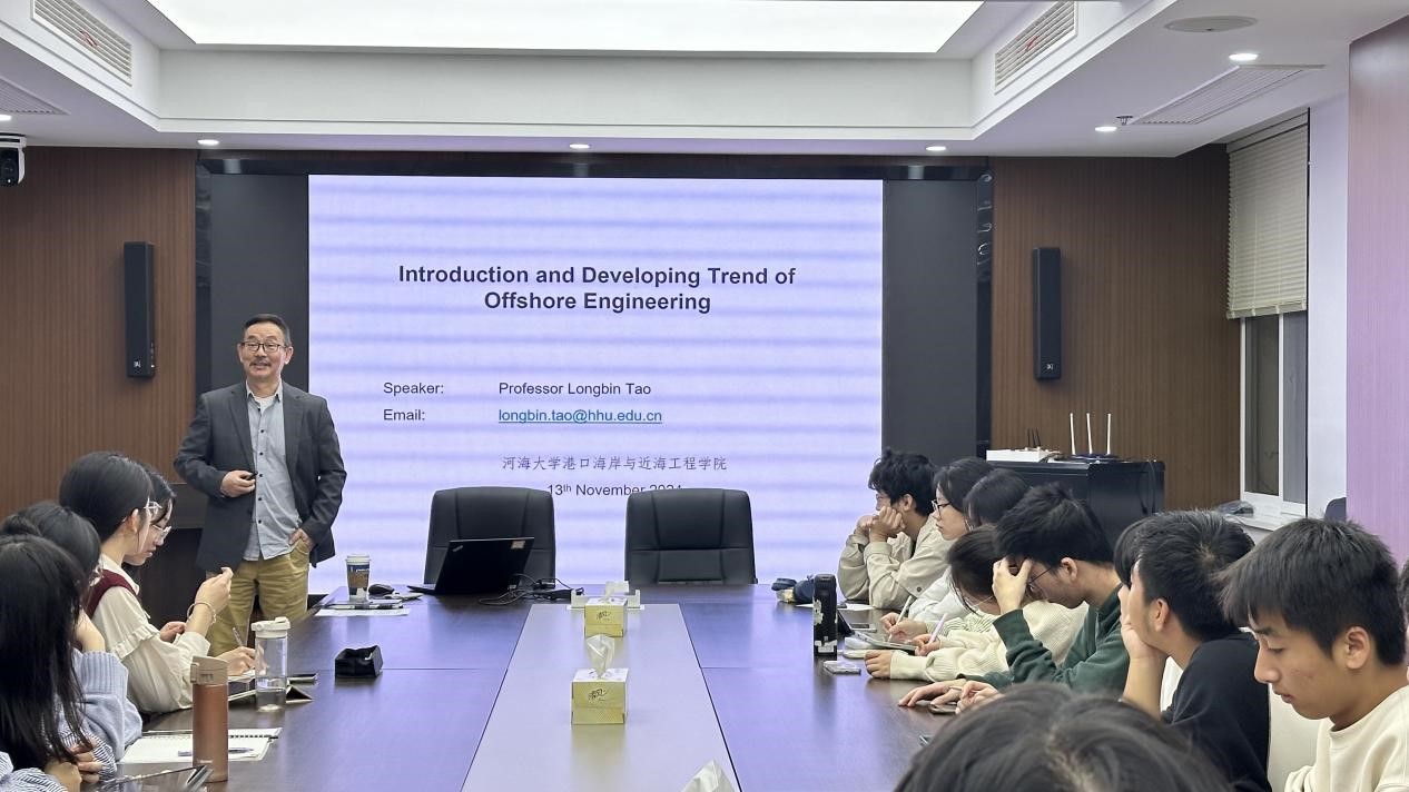 11月13日晚,SEX8 海工装备与水下技术研究所陶龙宾教授在严恺馆602会议室面向2022级船海专业学生开展学术报告,活动由学院船舶与海洋工程系系主任汤冬主持,学院副院长陈永平出席。