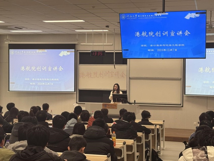 12月7日下午,港航院2023级本科生首期创训宣讲会于常州校区成功举办。活动特邀港航院副院长张蔚教授,庄宁教授、赵忠伟副教授作为主讲嘉宾。活动由港航院2023级辅导员廖芳艺主持,港航院2023级全体本科生参加宣讲会。