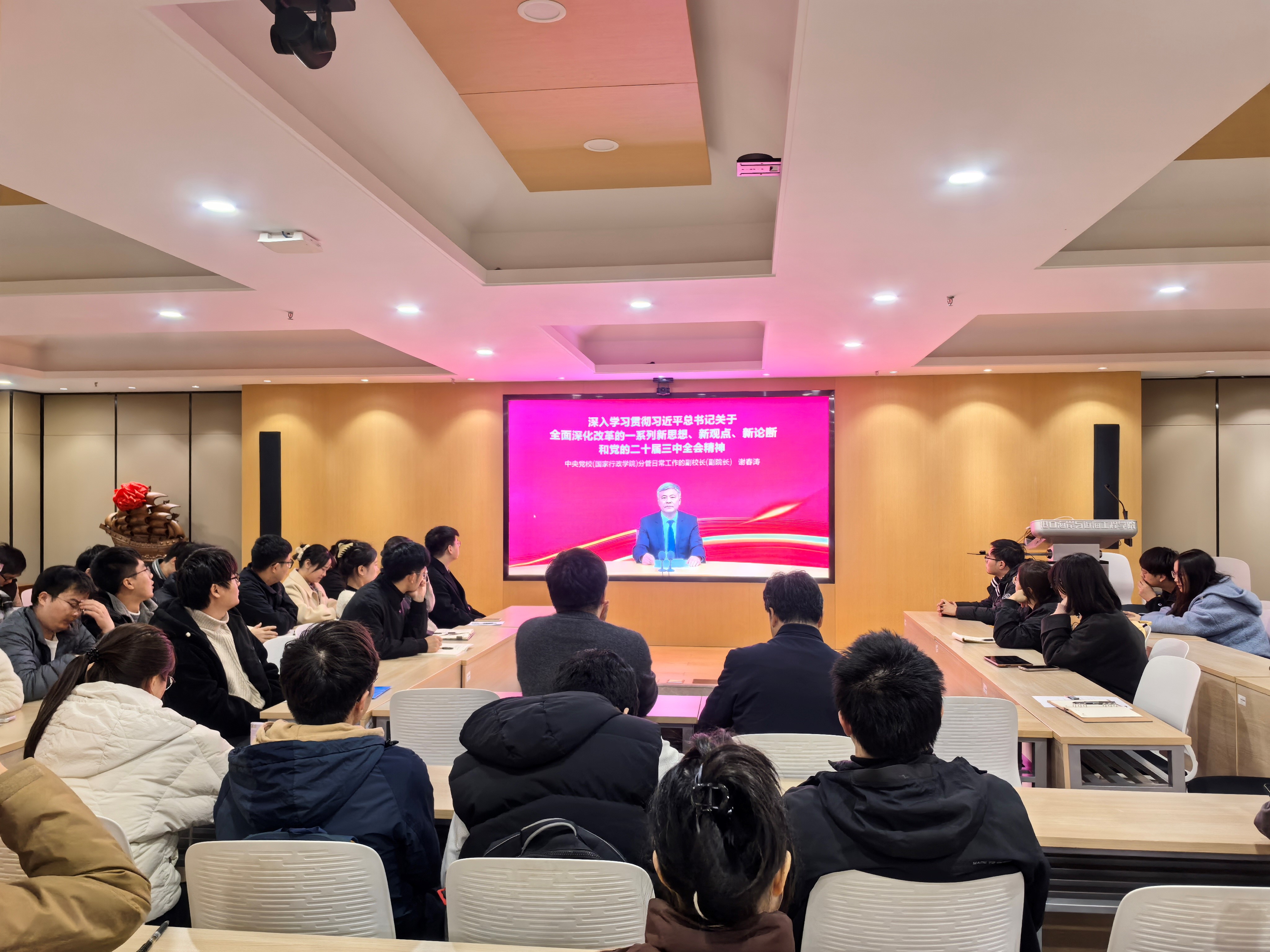 本硕博三个党支部的全体党员共同学习了由中央党校(国家行政学院)谢春涛教授主讲的《深入学习贯彻习近平总书记关于全面深化改革的一系列新思想、新观点、新论断和党的二十届三中全会精神》专题报告。