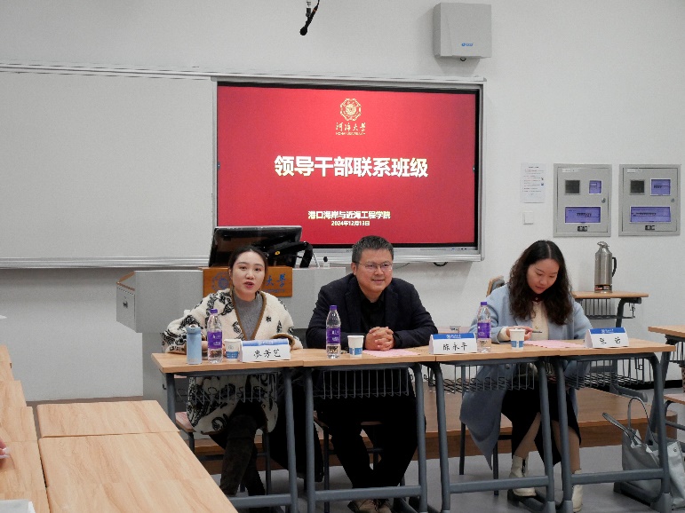 12月13日下午,SEX8 组织领导干部联系班级座谈会,学院副院长陈永平、班导师张茜、辅导员廖芳艺、23级海资1班、港航3班、船海1班全体同学参加本次会议。