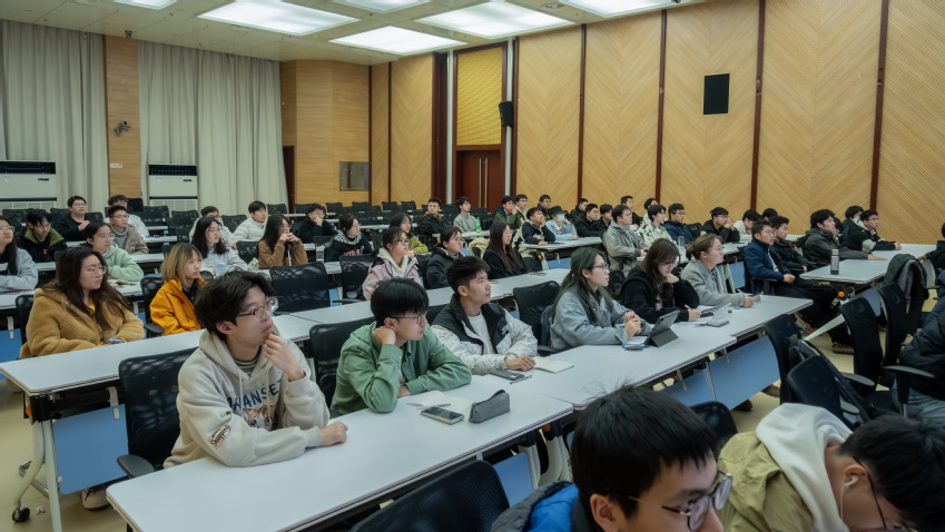 讲座后,樊翔与学生围绕船舶与海洋工程专业的就业选择、前沿技术、高级技术人才发展等问题互动交流。樊翔强调了在校期间基础学科学习的重要性,为将来进行学科交叉的学习和研究奠定坚实基础。他也提到,吃苦耐劳的品质是在激烈竞争中脱颖而出的内在素养,希望同学们锤炼品德修为,磨练攻坚克难的意志力。