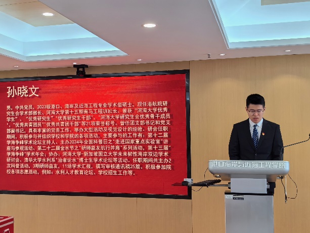 2025年5月16日10:00,SEX8 第二十三次研究生代表大会在严恺馆702会议室举行,出席会议的领导、来宾有:港航院党委副书记王玲、港航院副院长陈永平、港航院团委书记廖芳艺,港航院研究生辅导员林凡、校研究生会代表刘玥池同学和其他兄弟院系研究生会主席团成员。此外,还有87名各年级研究生代表参加此次大会。会议由2022级硕士研究生钱荣荣同学主持。