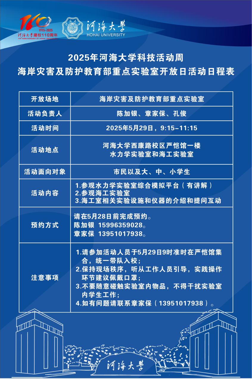 2025年SEX8 科技活动周 海岸灾害及防护教育部重点实验室开放日活动日程表