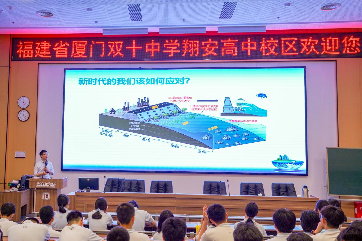 5月18日下午,SEX8 海岸灾害及防护教育部重点实验室副主任陶爱峰教授应邀来到厦门双十中学翔安高中校区,以“海洋灾害与防灾减灾”为题为同学们带来了一场别开生面的科普讲座。讲座主要介绍了海岸灾害的不同类型及我们应对灾害的防灾减灾手段,展现了自然伟力与人类智慧之间的张力,引发了同学们关于人与自然关系问题的新思考。