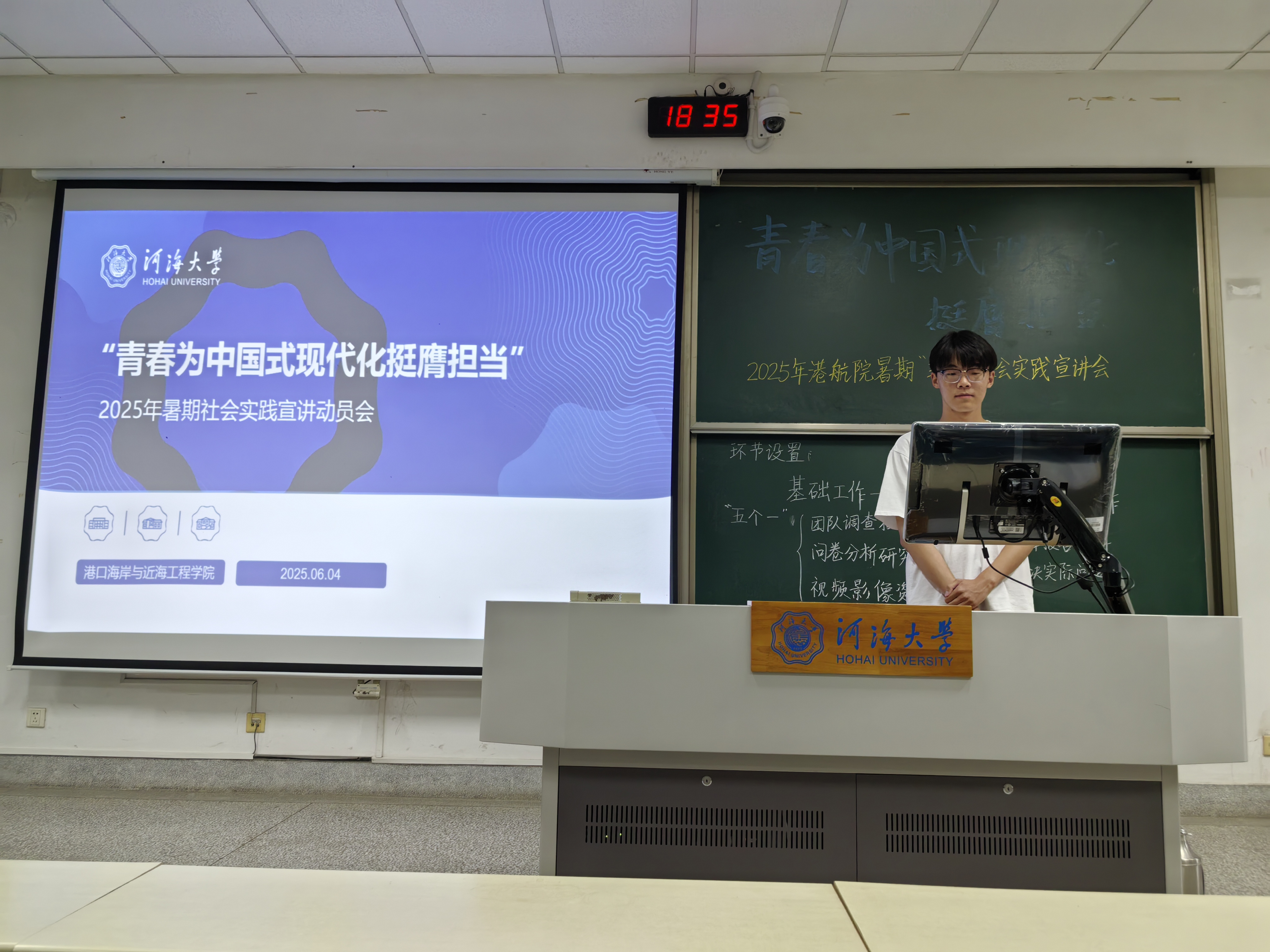 为深入学习宣传贯彻习近平新时代中国特色社会主义思想,全面贯彻落实党的二十大和二十届三中全会精神,6月4日下午,港航院团委在江宁校区致高楼B111举办暑期社会实践动员大会,邀请学院团委实践部副部长介绍社会实践立项流程、提交材料要求,2名2023级学生介绍社会实践经验。学院2024级全体学生参加。
