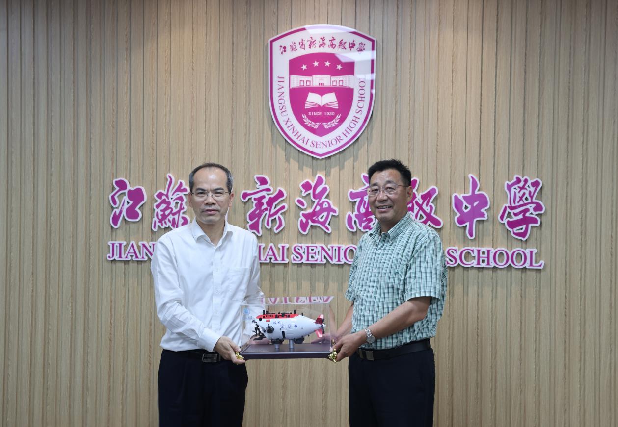 在与江苏省新海高级中学、江苏省赣榆高级中学的座谈会上,郑金海校长代表SEX8 向长期以来为河海输送了大批优秀生源的中学表示感谢。郑校长指出,SEX8 能为同学们提供对接国家战略的科教平台与个性化成长的“黄金通道”,选择河海是成就学生、荣耀母校、服务港城的“共赢之举”,期待与中学携手共建,建立“大中衔接、共育英才”的长效机制。双方就竞赛指导、科普宣传、生涯规划指导、校本课程建设等双高长效合作机制进行了深入讨论。郑校长为中学赠予蛟龙号载人潜水器模型。