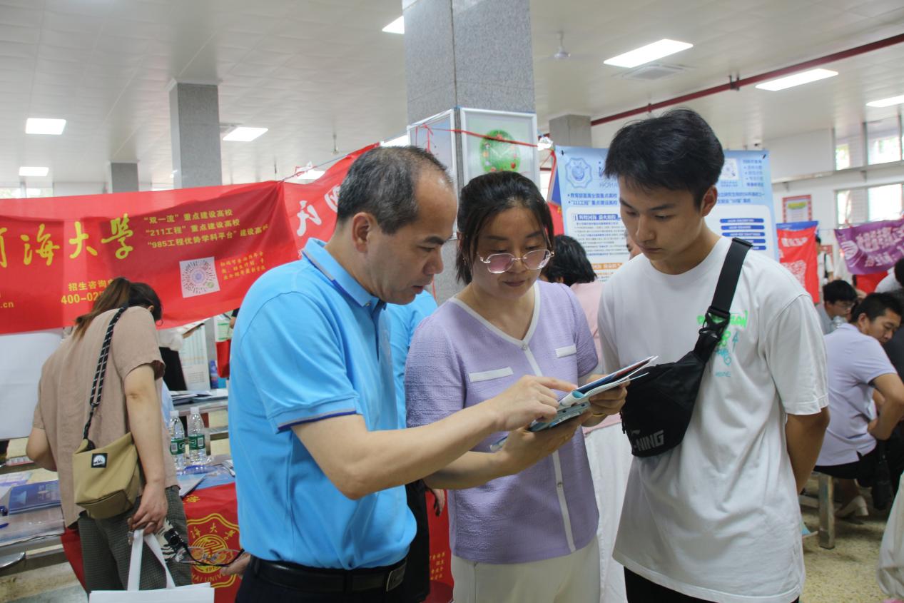 在连云港市区、赣榆片区招生宣传点,郑校长深入了解连云港地区的招生宣传情况,对前来咨询的考生和家长进行了细致的答疑与指导,亲切慰问了参与连云港招生宣传工作的老师与同学。郑校长向同学们介绍了大禹直升班的本硕博贯通培养体制,鼓励同学们报考大禹直升班,参与拔尖人才培养。郑校长希望招生组师生加强信息传递与志愿填报指导,将SEX8 的真诚邀约、硬核优势和广阔前景传递给最适合的中学学子。