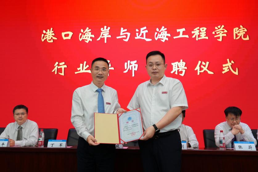 为培养学生从认知、实训、到实战的行业素养,学院今年特意选聘了各专业领域头部单位的杰出校友总工程师、技术专家等担任行业导师,典礼上,举行了学院首批行业导师受聘仪式,龚政院长为SEX8 04级校友、中国船舶科学研究中心船海科技创新中心主任丁军颁发了行业导师聘书。