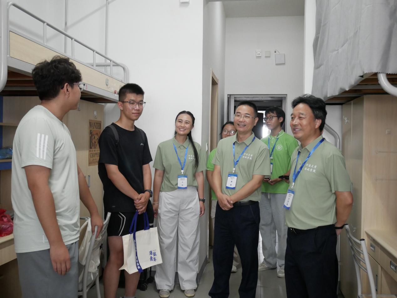 学院党委书记张雪刚、院长龚政、党委副书记王玲及学院2025 级本科新生班导师、辅导员热情迎新,把迎新大礼包亲手交到每位新生手里。龚政院长关切询问新生来自哪里,结合学生专业畅聊未来发展方向;张雪刚书记提醒新生 “不管是学业上还是生活上有问题,随时找学院、找老师”;王玲副书记现场解答新生的疑问,帮助新生适应新的环境。校院领导和老师们的关心,让刚到学校的新生少了陌生感,感受到了港航院的温暖。