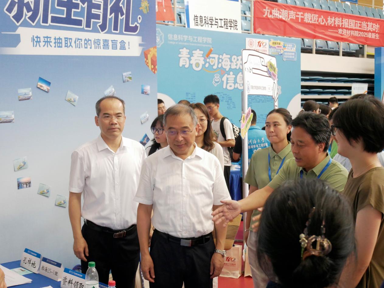 迎新现场欢声笑语,学校党委书记杨桂山、校长郑金海、党委副书记、副校长陆国宾、副校长沈扬与学校相关职能部门负责人先后来到港航院报到点,关心报到实况,慰问班导师、志愿者及相关工作人员,并与新生亲切交流。
