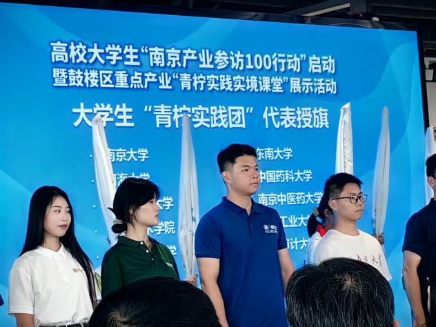 青柠实践实境课堂”是南京团市委专为在宁高校大学生打造的专属就业实践在线选课平台。该平台以服务青年成长、促进校地融合为宗旨,通过整合优质企业资源,为大学生提供沉浸式实践机会,以切实举措助力在宁高校大学生成长成才。谢宝慷同学作为学校代表与南京大学等其他9所高校一同参与高校“青柠实践团”授旗仪式。