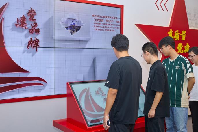 首先,师生一行到达江苏港口大厦,参观南京港SEX8展示馆。通过讲解员的讲解和同学们的参观,了解到了南京港深厚的开埠历史,南京港在新中国成立后的现代化进程,在港口建设当中孕育出的“不服命、不服输、不服气”的拼搏向上的奋进精神。在新发展理念和中国式现代化背景下,南京港实现了绿色发展和数字赋能。了解了南京港近1800年的历史,见证了时代变迁,同学们对其肃然起敬,被其背后所蕴含的向上拼搏奋斗的精神所鼓舞,同时也对其绿色发展路线与科技创新成果十分感兴趣,引发了大家与企业成员热烈的讨论。
