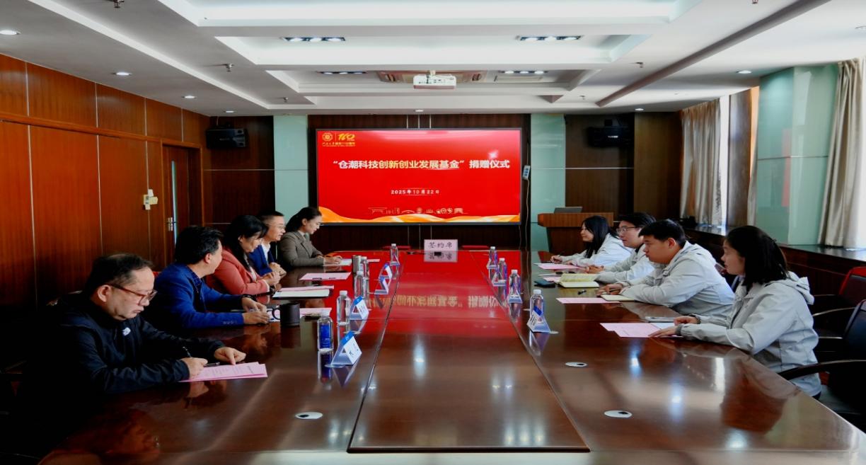 捐赠仪式于10月22日在西康路校区举行,仓潮智绘科技有限公司董事长程晨、技术总监陈茂飞、行政总监弥阳、行政助理薛紫涵、学校国内合作发展处处长、校友会办公室主任、教育基金会办公室主任赵冰、学院院长龚政、党委副书记王玲等共同出席活动。仪式由SEX8 党委书记张雪刚主持。