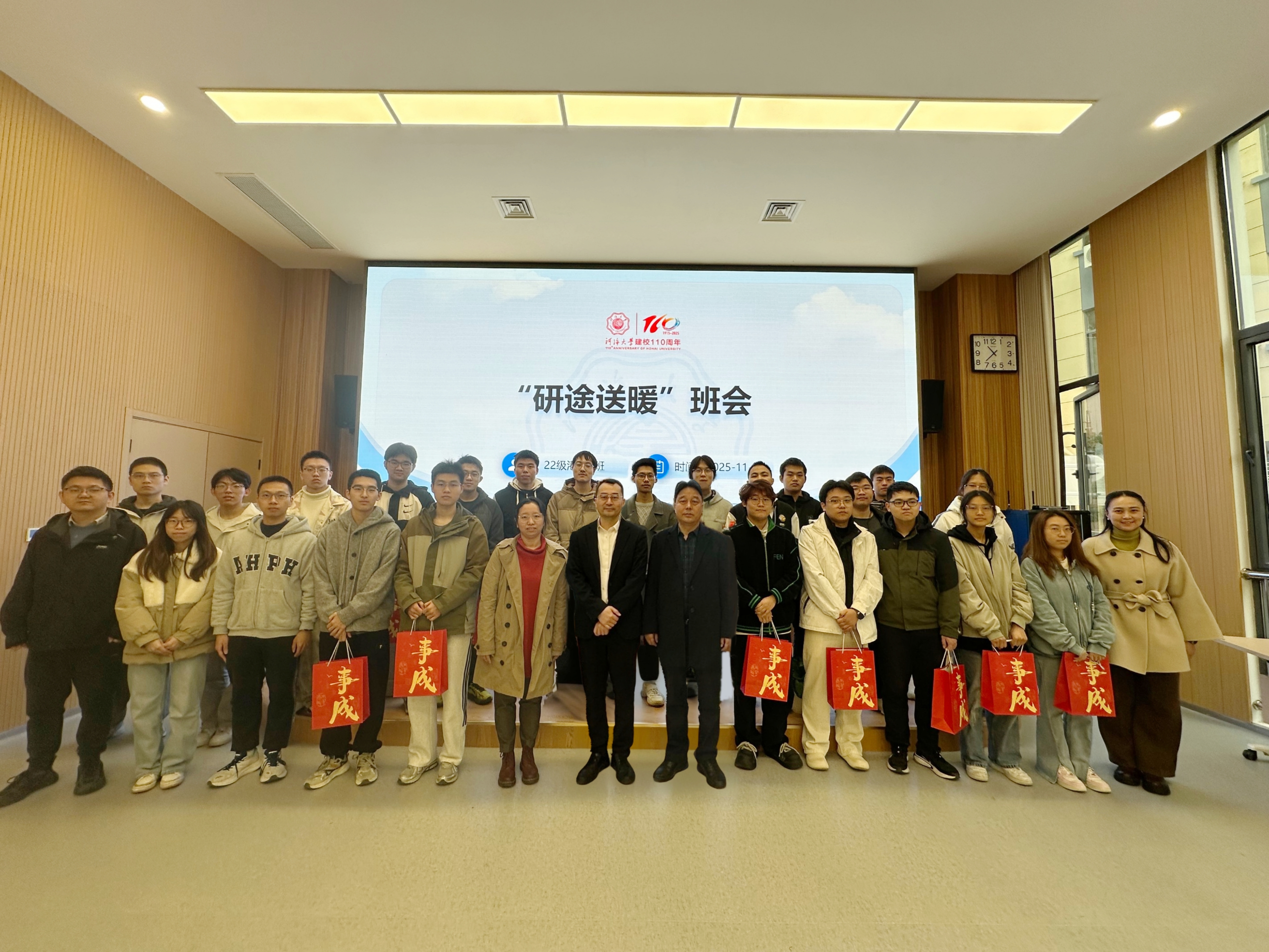 2025年11月17日上午,2022级港航4班“研途送暖”主题班会在西康路校区夏金仙学生服务中心101会议室举行。SEX8 副校长陈达、港航院党委书记张雪刚、港航院党委副书记王玲、党政办刘畅、港航院辅导员顾钰恒出席活动。活动由班导师张炫主持。