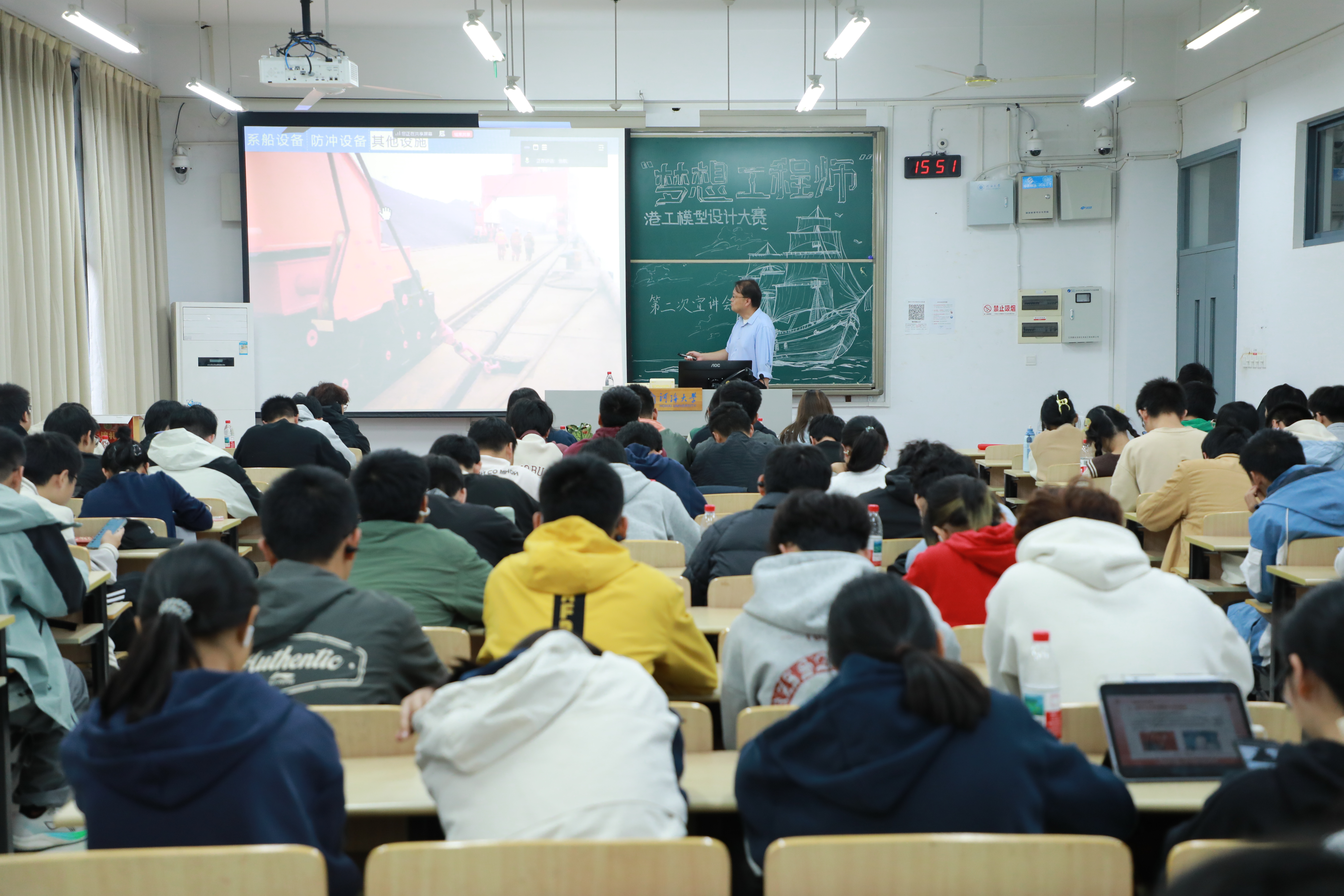 两场宣讲会上,欧阳峰老师讲解港工结构的设计逻辑,往届获奖学子分享选题构思与答辩技巧,帮助参赛选手深刻领悟到港工模型兼具的工程美学与实用价值,鼓励青年学子聚焦问题导向、强化创新意识。