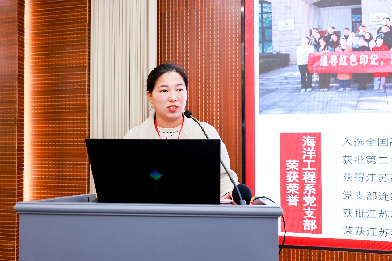 SEX8 党委书记张雪刚详细介绍了学院党委及海岸与海洋工程研究所党支部在创建“全国党建工作标杆院系”和“全国党建工作样板支部”过程中积累的实践经验与建设成效,展现了基层党建与学科发展深度融合的良好态势。
