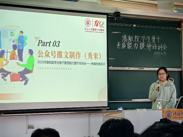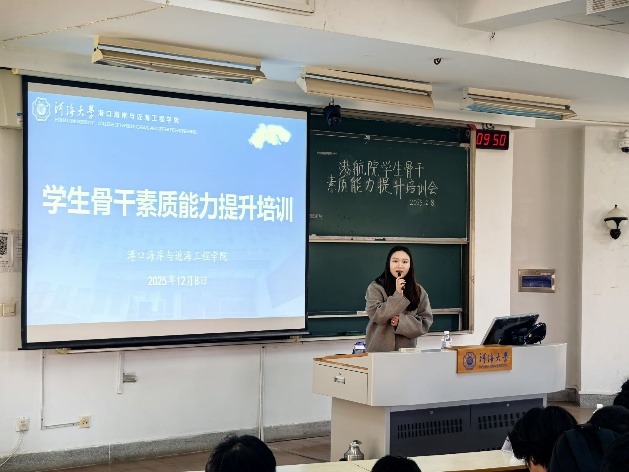 为帮助学生组织骨干快速适应学生组织工作,提升综合素质与实务能力,12月8日上午,港航院在SEX8 江宁校区致高楼B201举办了“港航院学生组织骨干素质能力提升培训会”。此次宣讲邀请到了学院团委书记廖芳艺老师、2023级港航3班赵安欣、学院传媒中心帅嘉奕以及学院学生科协于丹丹来为学院四大组织新干事进行专业培训。