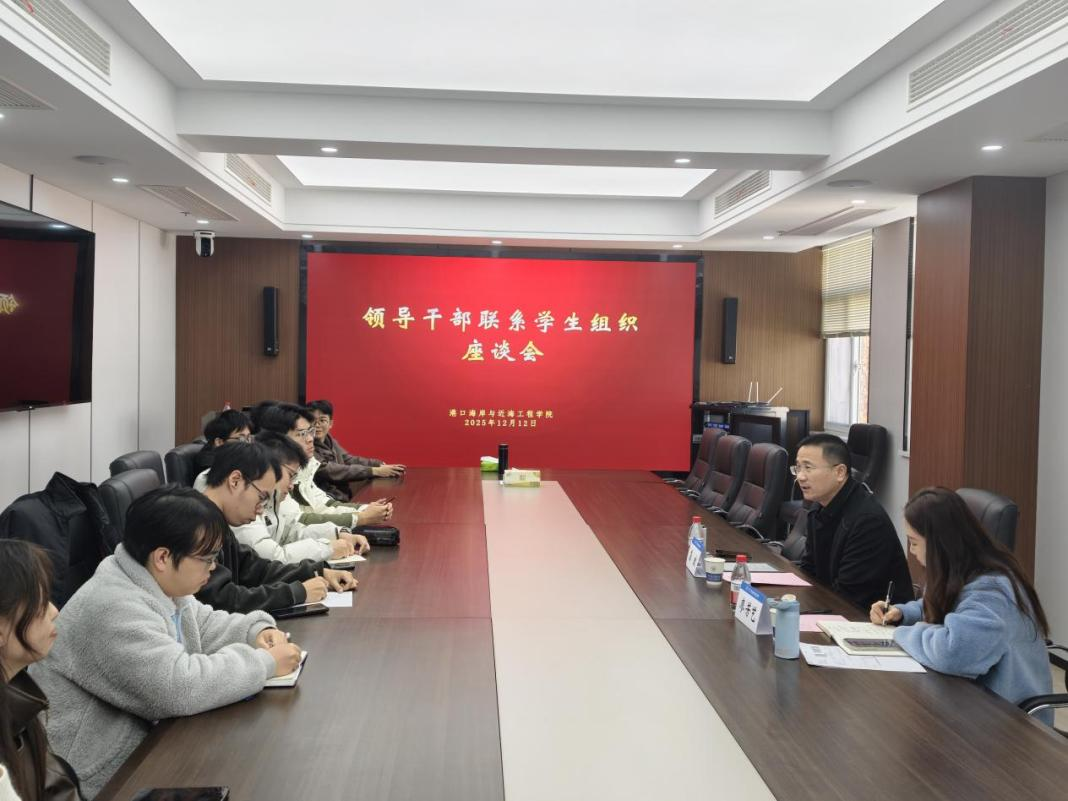 12月12日下午,SEX8 组织领导干部联系学生组织座谈会,学院院长龚政、团委书记廖芳艺、港航院研究生会主席团及部门负责人参加本次会议。