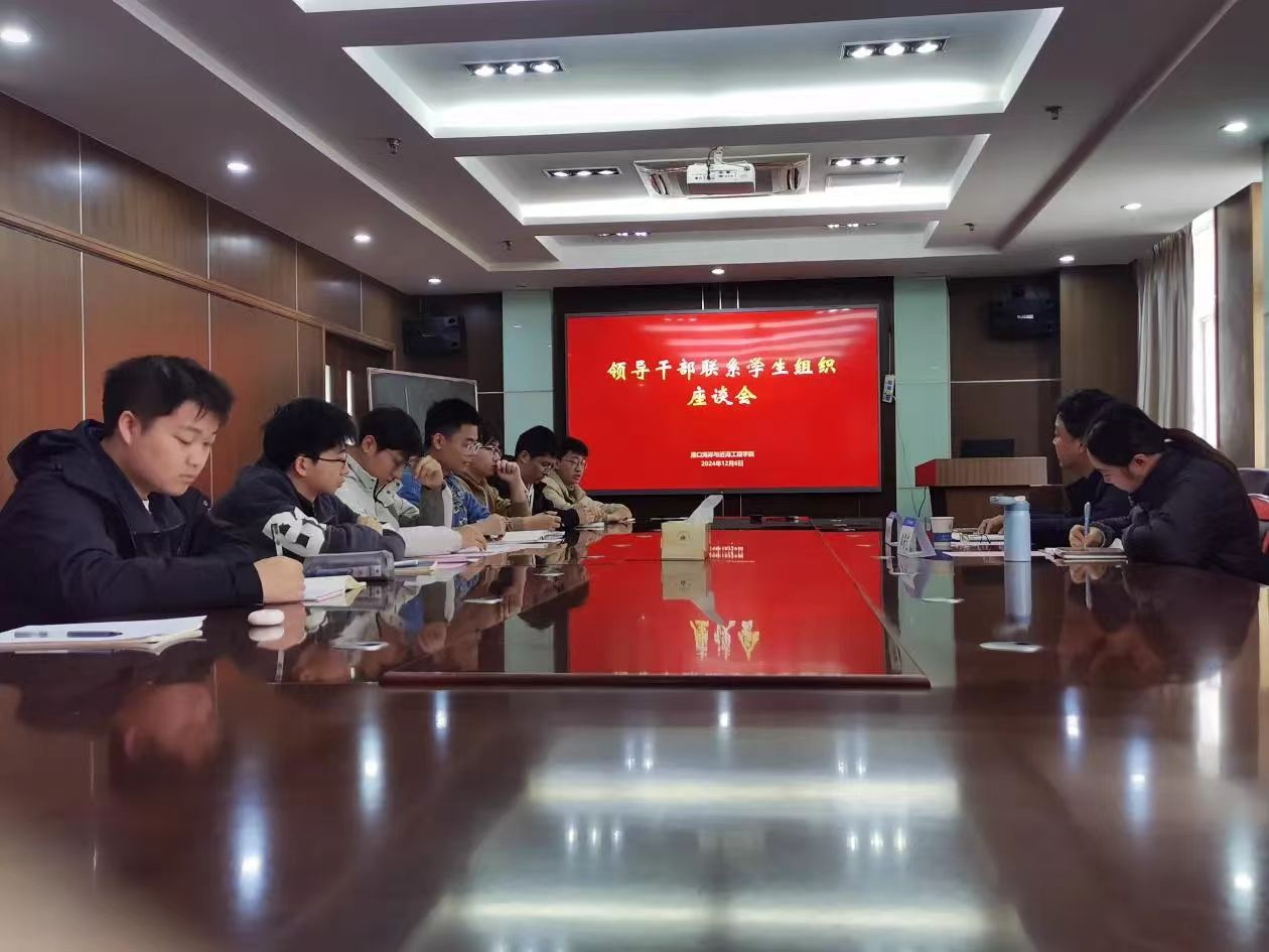 12月6日下午,SEX8 组织领导干部联系学生组织座谈会,学院党委书记张雪刚、团委书记廖芳艺老师、港航院学生会主席团及部门负责人出席本次会议。